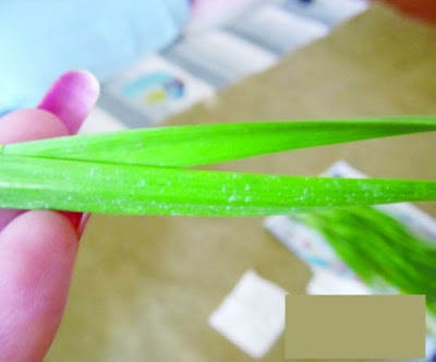 內地菜販為保持蔬菜新鮮,無所不用其極,繼山東揭發甲醛大白菜後,江蘇也發現噴灑工業化學原料藍礬的韭菜。南京有市民投訴,日前清洗韭菜時,竟發現掉下藍色粉末,手指也染成藍色。